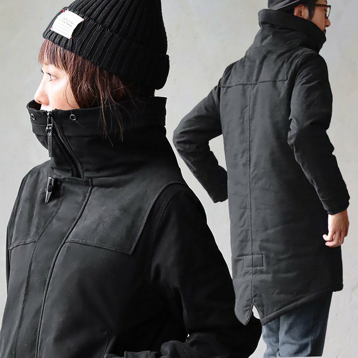 「体感温度+4」でマフラー要らずのストレッチコート。 モッズコート ストレッチ 暖かい 裏地ボア 中綿 メンズ レディース スリム ミリタリー コート 冬 アウター モッズ ロング 着痩せ ハイネック 小顔 袖リブ ダブルジップ 防寒 黒 ブラック かっこいい すっきり 細見え パティ ALISTAIR アリステア
