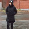 【モデルコメント】中は、カットソー1枚くらいは合わせても問題はありません。すっきりと着れるサイジングでした。 【客観的コメント】太ももが半分近く隠れる着丈の長さです。中は着込めませんが、キレイなシルエットでは着れていましたね。