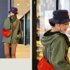 【モデルコメント】中はタンクトップが着れるぐらいでした。腰周りにフィットしていて、あまり中に着る余裕はなかったですね。 【客観的コメント】お尻が全部隠れそうなぐらいの着丈でした。腰周りのラインが少し出ていました。