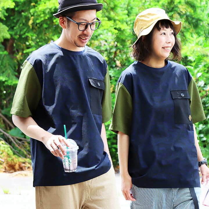 着た瞬間、サラッとスルっと、涼しく軽い! 接触冷感 涼しい Tシャツ 半袖 レディース メンズ クルーネック クレイジー クイックドライ シアサッカー 軽量 速乾 冷感 配色 切り替え ポケット ミリタリー プリント 家庭洗濯 マルチカラー 微ストレッチ 夏 大人 カジュアル PATY パティ OAR’S オールズ