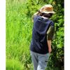 本体(袖・ポケット/ブラック・オリーブ):薄手でサラサラとしたドライタッチ地。織りによる凹凸があり、とっても軽やか。伸縮性は微妙に少しあり、光にかざすと強い透け感があります。