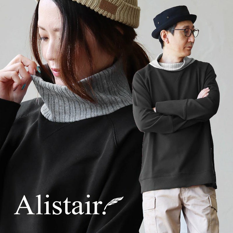 【アウトレット】【B品傷あり・縫製不良】トレーナー 長袖 スウェット 裏毛 綿100% ケーブルニット切り替え ハイネック タートル サイドジップ使い ロングリブ メンズ レディース トップス 軽量 暖かい