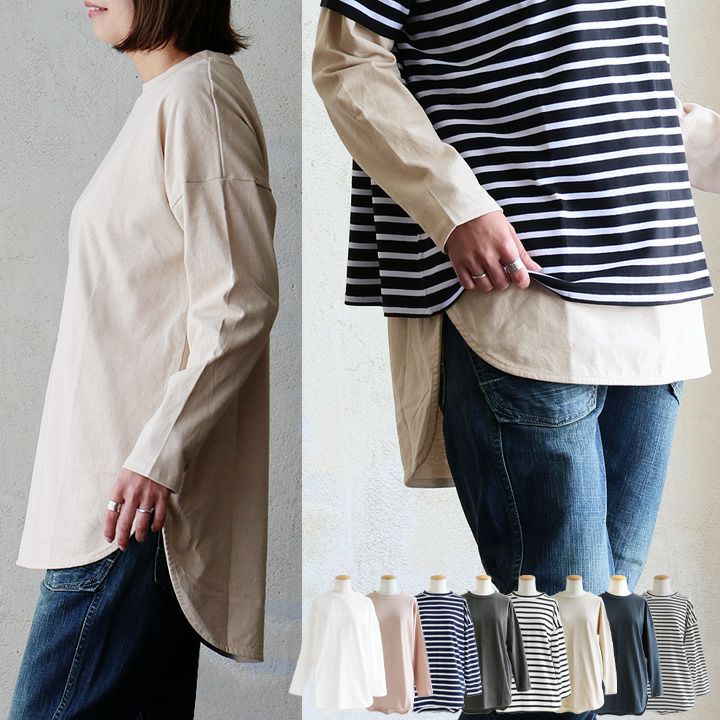 重ね着が苦手だとしても、ゆるトップスの下には絶対コレ! 【メール便50】 重ね着 インナー 長袖 レディース お尻 体系 カバー ロンt シャツ カットソー ロング ロング丈 ラウンドヘム ストレッチ しっかり 丈夫 ポリコットン レイヤード おしゃれ ゆったり トップス 無地 薄手 30代 40代 50代 60代 パティ Souple スプル