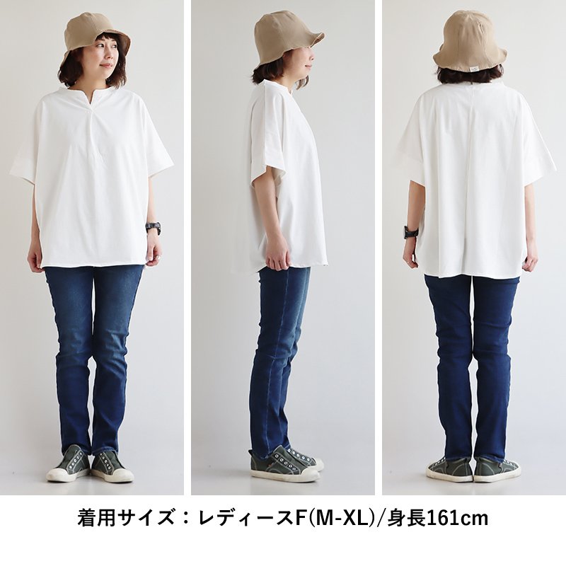 スッキリ見える理由は、さり気なく、でもあればあるほど良い。 【メール便50】 tシャツ ティーシャツ 五分袖 5分袖 レディース チュニック キーネック ワイドシルエット 着やせ 細見え 二の腕 お尻 体系 隠れ カバー 重ね着 カジュアル 夏 夏服 40代 50代 パティ