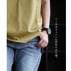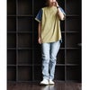 生地全体はコットン100素材からなるカットソー。ボディは程よい厚さで独特な色落ち感と風合いのある柔らかな質感。縦・横・斜め方向に伸縮性があり透け感はありません。