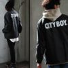 「あえて」のカンジが新しく、面白い。 アウター ジャケット コーチジャケット ボア付き ナイロン トグルボタン バックプリント 防寒 防風 暖かい ゆったり カジュアル PATY