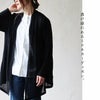 ポリエステとレーヨン混生地。しっとりと肌に馴染み、落ち感ととろみのある素材感です。肌当たりも軽やかで縦・横・斜めにグインと伸び感があり、薄手でほんのりと透け感のあるシアーカーディガンです。