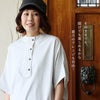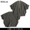 米綿100%で程よい厚さの乾いた質感。型崩れしにくいタフな生地で、かすれた色落ち感が特徴的。伸縮性はやや斜め方向にあり透け感はありません。