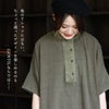 【モデルコメント】中は、タンクトップくらいが良いですね。程好くゆとりを持って着れました。 【客観的コメント】お尻は完全に隠れる着丈の長さです。バランスの良いシルエットで着れていましたね。