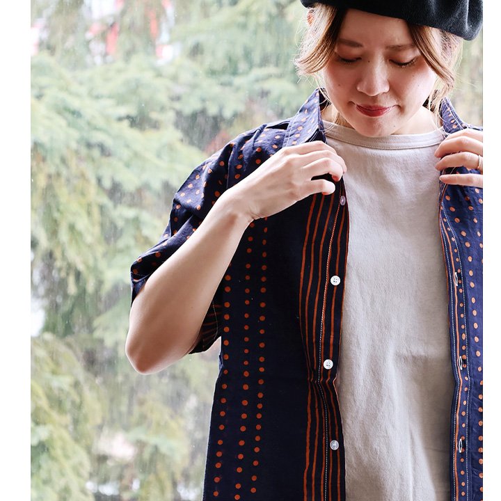 「涼しい顔で、余裕」な一着を。 【メール便50】 柄シャツ レディース 着痩せ 落ち感 涼しい 半袖 綿100% コットン 夏 薄手 軽い レトロ ドット ストライプ クレイジー お尻 隠れる カジュアル パティ BLUETO ブルート