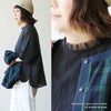 本体:自然なシワ感によってふわっとナチュラルな風合いの表情があるコットン生地になっています。薄手で軽く、ほんのりと透け感のあるブラウスで、伸縮性は斜め方向にややあります。