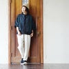 【モデルコメント】中は、タンクトップくらいが良いですね。全体的に程好くゆとりを持って着れました。 【客観的コメント】お尻は半分くらい隠れる着丈の長さです。バランスの良いシルエットで着れていましたよ。