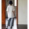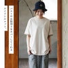 程よい厚さでしっかりとした生地感ながらも、肌馴染みの良い柔らかさのあるコットン素材。独特な風合いが特徴的なアイテムです。縦・横・斜め方向にしなやかなに伸び、光にかざすと若干透け感があります。