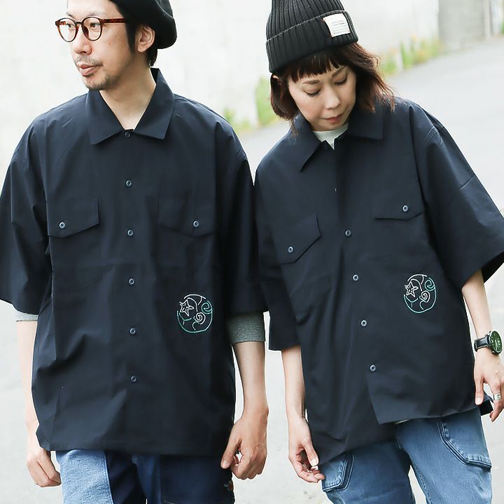 ゆるいのに、タフ。機能的なのに、レトロ。 シャツ 半袖 五分袖 ワイド 着痩せ すっきり 夏 大人 ストレッチ 薄手 軽い ドライ 速乾 消臭 ユニセックス レトロ 月 星 刺繍 しっかり 丈夫 メンズ レディース BLUETO ブルート