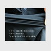 薄手ながら高密度な織りでハリ感のあるリップストップ地。着ると柔らかく、縦・横・斜めにぐんと伸びて戻るストレッチ性があり、透け感はありません。やや糸くず等が付着しやすい生地感ですが、お洗濯後は軽いアイロン掛けで良い形状安定機能があります。