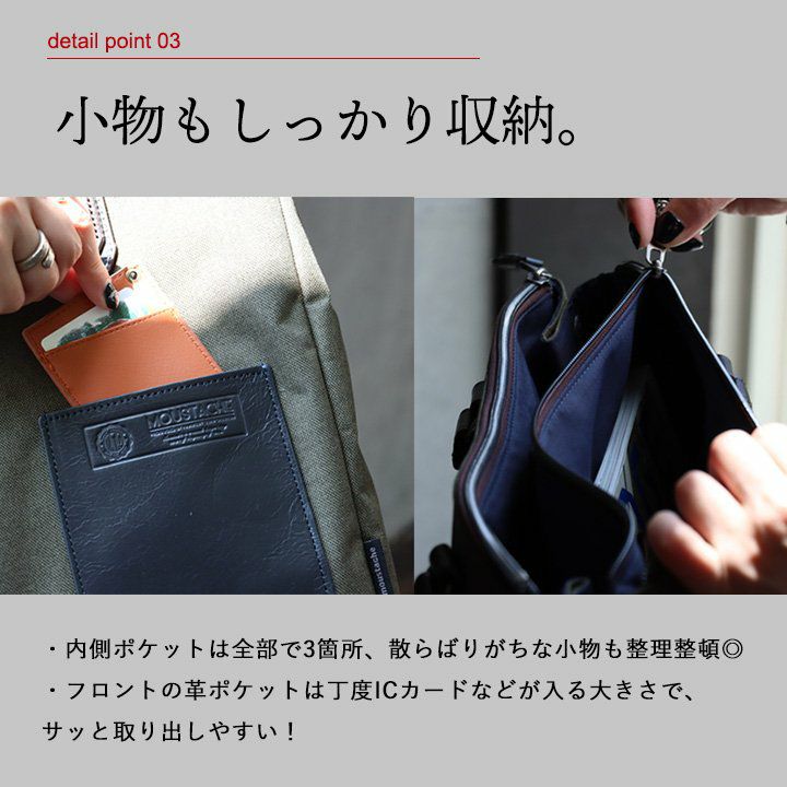 本体:程よい厚みで、しっかりとした丈夫でハリのあるさらっとした触り心地のポリエステル生地です。伸縮性・透け感ともにありません。牛革部分は滑らかで上品なツヤのある質感。