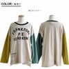 生地を切り替えるだけで、また違った新鮮さ。 ロンT 長袖 レディース 配色切り替え ロゴプリント ジャガード コットン アクリル ゆったり 大きいサイズ カジュアル PATY