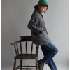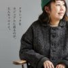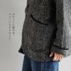 本体:やや毛羽立ちのあるツイード調のジャケットです。暖かい素材感で柔らかくて軽いポリエステル100%生地。伸縮性はなく光にかざすと織り地からの若干透け感があります。