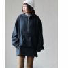 【モデルコメント】中は、カットソー2枚くらいは合わせても問題はありません。程好くゆとりがありました。 【客観的コメント】太ももに少しかかるくらいの着丈の長さです。バランスの良いシルエットで着れていましたね。