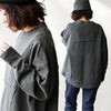 【モデルコメント】中は、トレーナーを合わせても問題はありません。全体的にしっかりとゆとりがありました。 【客観的コメント】お尻は完全に隠れる着丈の長さです。バランスの良いシルエットで着れていましたね。