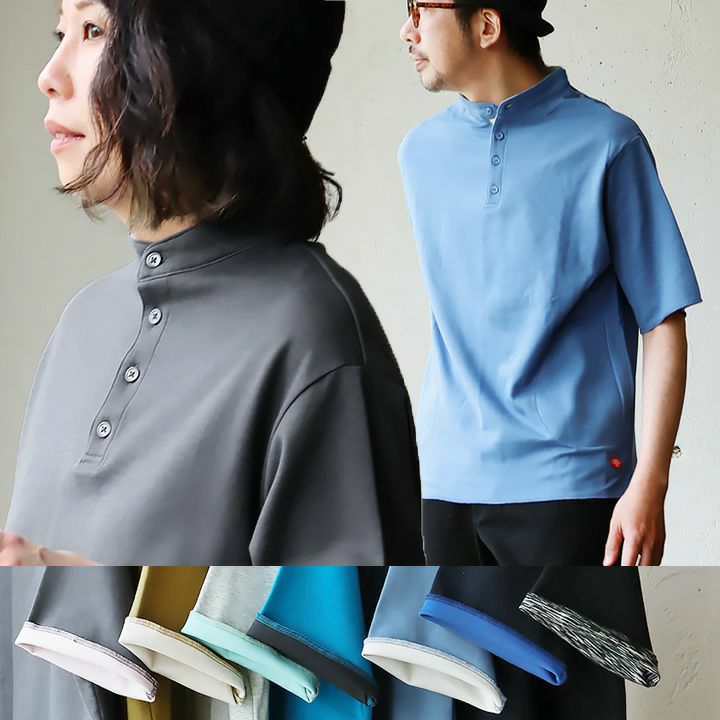 滑らかな着心地で、ちょっと遊び心ある大人ポロシャツ。 ポロシャツ 半袖ポロシャツ 5分袖 おしゃれ しっかり 柔らか 襟無し 夏 コットン カジュアル 体型カバー ユニセックス 体型カバー 着痩せ 柔らか ワンポイント 重ね着 配色 ストレッチ TOneontoNE トーン