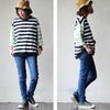 定番なのに他にない、カジュアルなボーダーカットソー。 【メール便50】 Tシャツ カットソー 6分袖 レディース クルーネック ボーダー 配色切り替え クレイジー 綿100% コットン 伸縮性 しっかり生地 タフ ゆったり すっきり 着痩せ 体型カバー カジュアル 夏 パティ le colis ルコリ