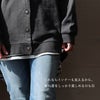 【モデルコメント】中は、カットソー2枚くらいは合わせても問題はありません。程好くゆとりがありました。 【客観的コメント】お尻はすっぽりと隠れる着丈の長さです。バランスの良いシルエットで着れていましたね。