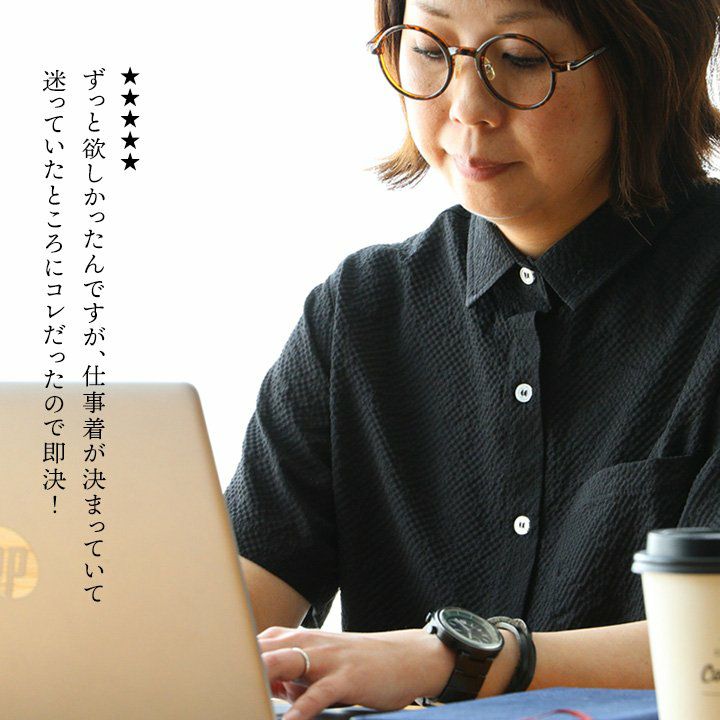 4. 大人 カジュアル シャツ 半袖 5分袖 メンズ レディース 夏 涼しい ストレッチ シアサッカー ポケット 二の腕 お尻 カバー しわになりにくい アイロン不要 仕事 カラーシャツ つばめ 刺繍 大き目 パティ SAIL セイル
