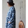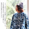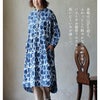 清涼感ある「藍の花」。 SLOW HANDS スローハンズ ワンピース ワンピ 長袖 バンドカラー ロング丈 レディース 綿100 コットン ブロックプリント 手作業 花柄 涼しい 軽い 薄手 体型カバー カジュアル 春 夏 秋 パティ