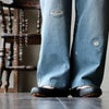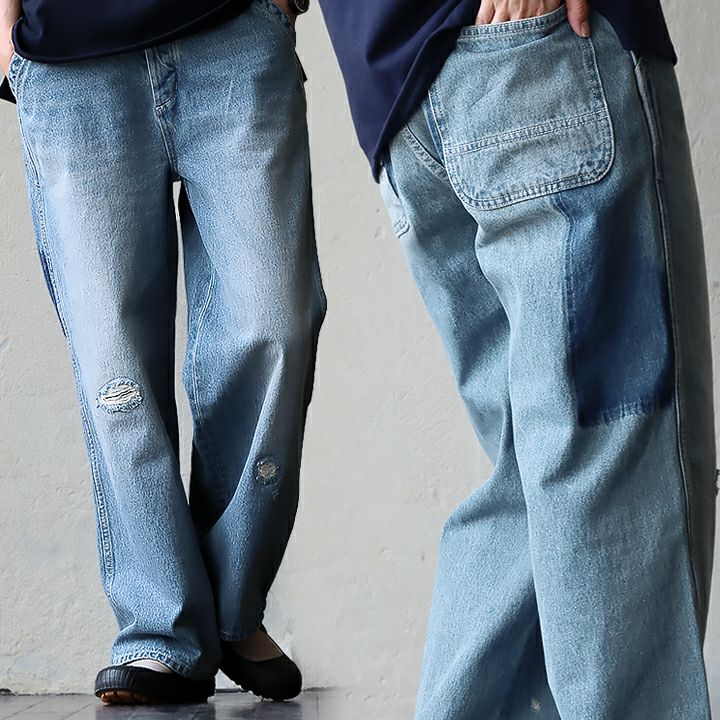 4. デニムパンツ ストレート ワイド レディース ゆる リメイク風 ウエストゴム ボタンフライ ユーズドウォッシュ 綿100% ペインターデニム カジュアル おしゃれ アメカジ ブルート パティ BLUETO ブルート