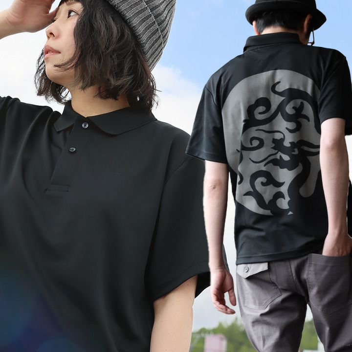 汗をかいても変わらず快適な「夏の黒」! ポロシャツ 涼しい メンズ レディース ドライ 夏 おしゃれ 着やせ バック プリント 月 ドラゴン 半袖ポロシャツ 軽量 速乾 UVカット 吸汗 薄手 ワンポイント ロゴ刺繍 スッキリ 体系 カバー 重ね着 カジュアル パティ ALISTAIR アリステア