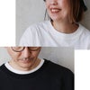 ぎゅっと目が詰まりドライな質感ながら、肌への引っ掛かりのないコットン100%地。編地による伸縮性が若干あり、光にかざすと透け感があります。