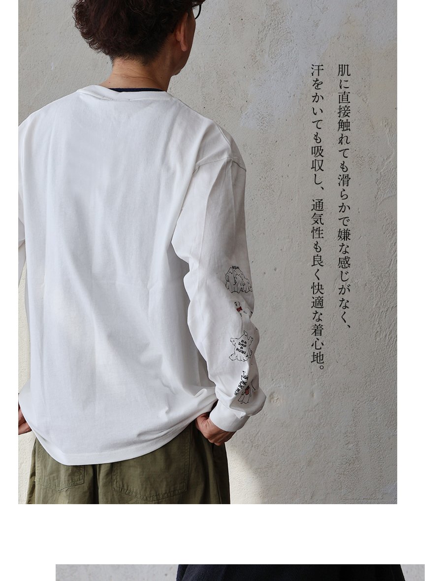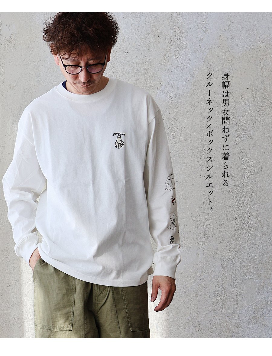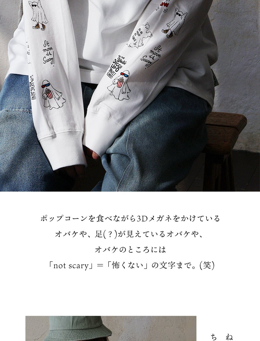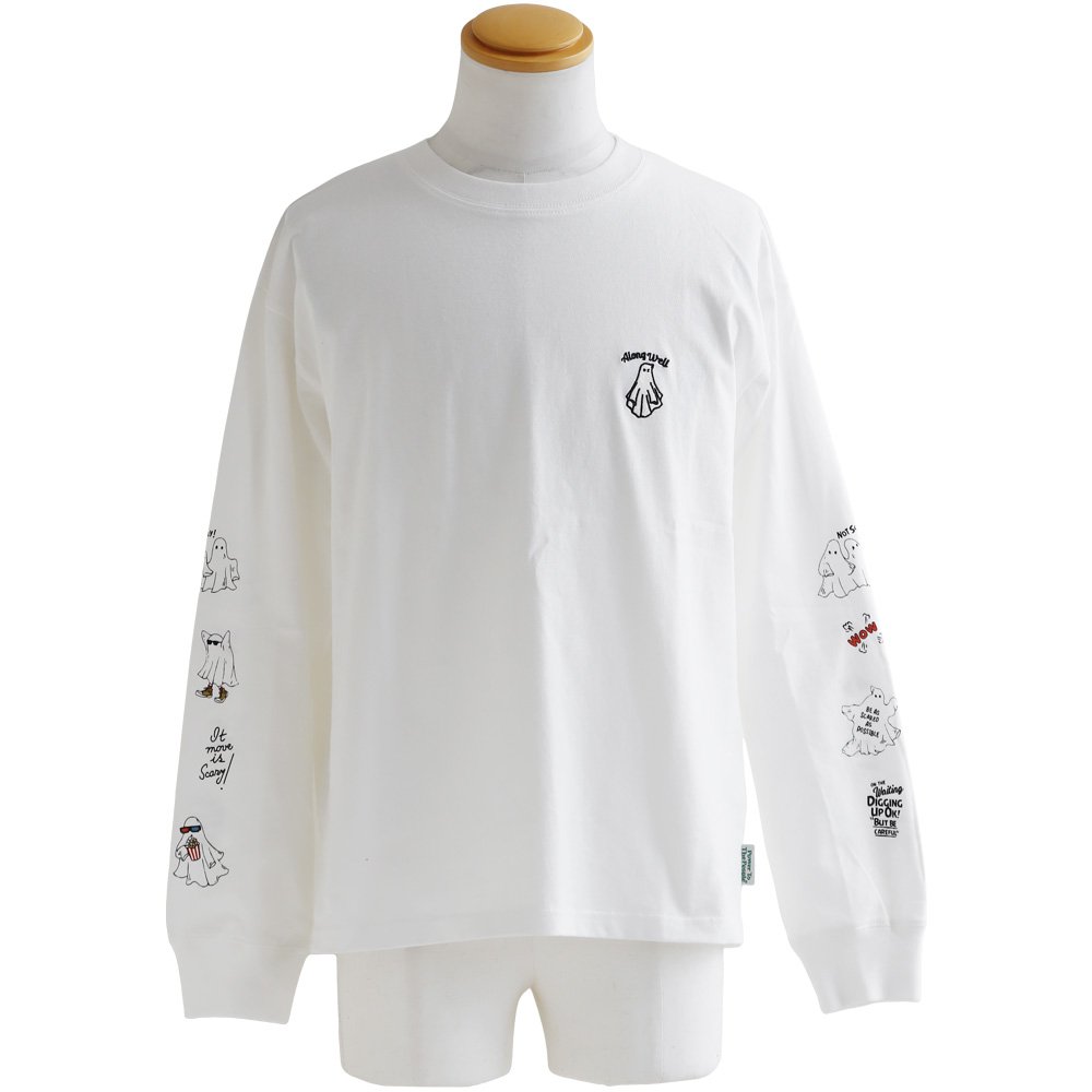 これなら「着心地」も「オバケ!?」も怖くない。 カットソー 長袖 メンズ レディース クルーネック キャラクター 刺繍 オバケ 綿100 コットン 通気性 袖リブ ゆったり 大きいサイズ カジュアル パティ