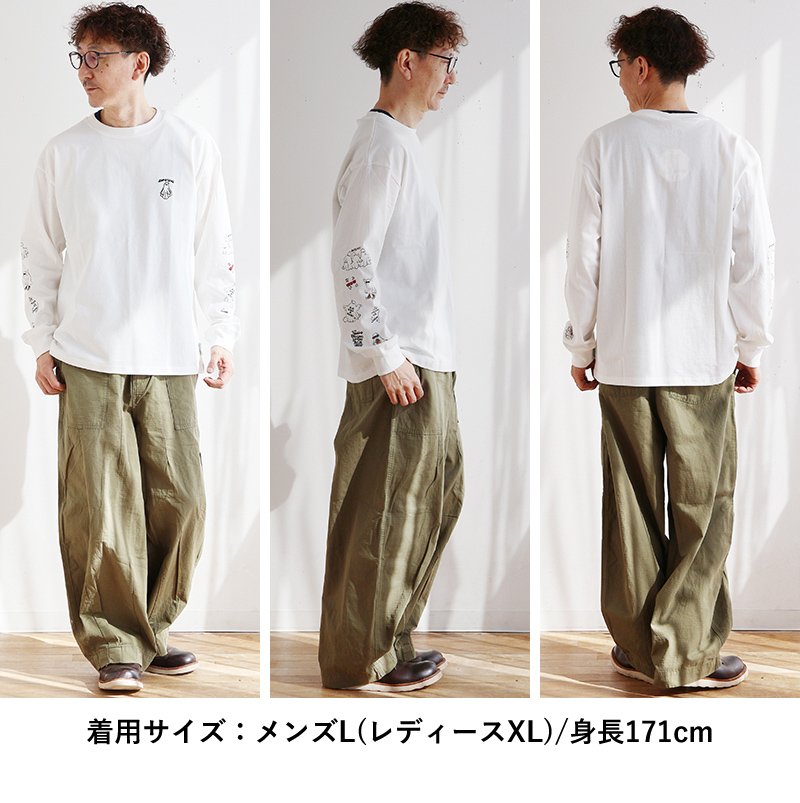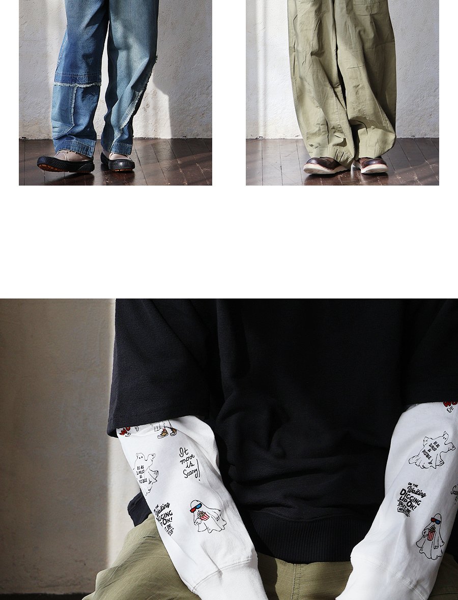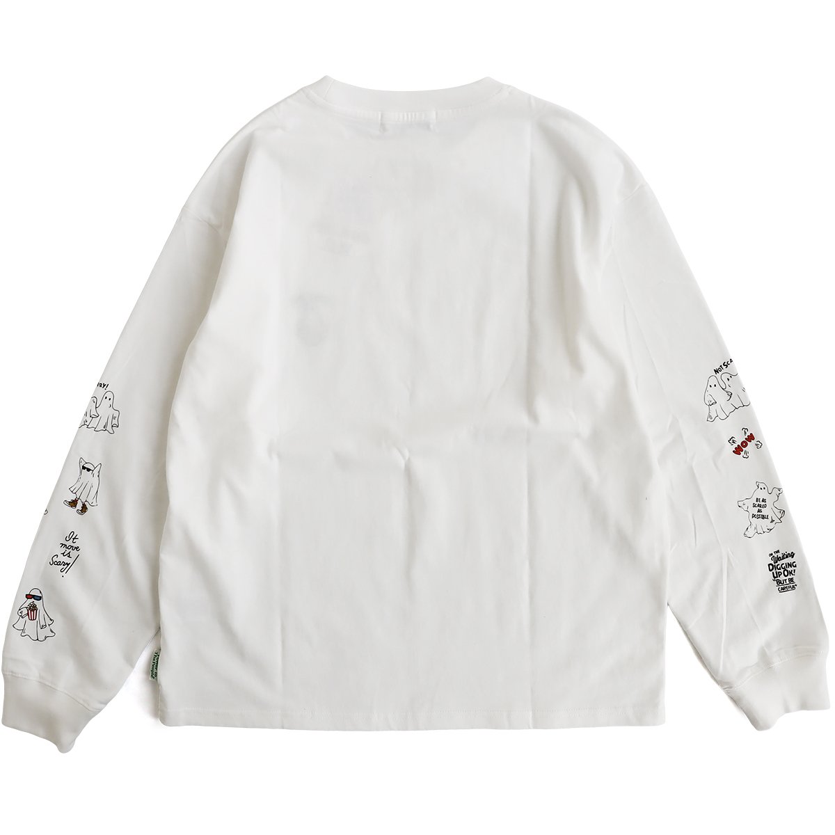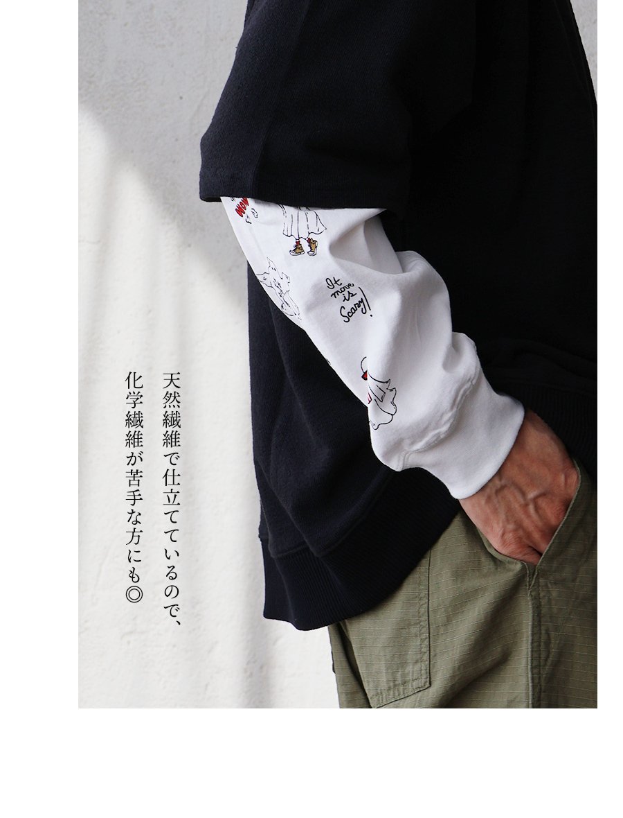 これなら「着心地」も「オバケ!?」も怖くない。 カットソー 長袖 メンズ レディース クルーネック キャラクター 刺繍 オバケ 綿100 コットン 通気性 袖リブ ゆったり 大きいサイズ カジュアル パティ