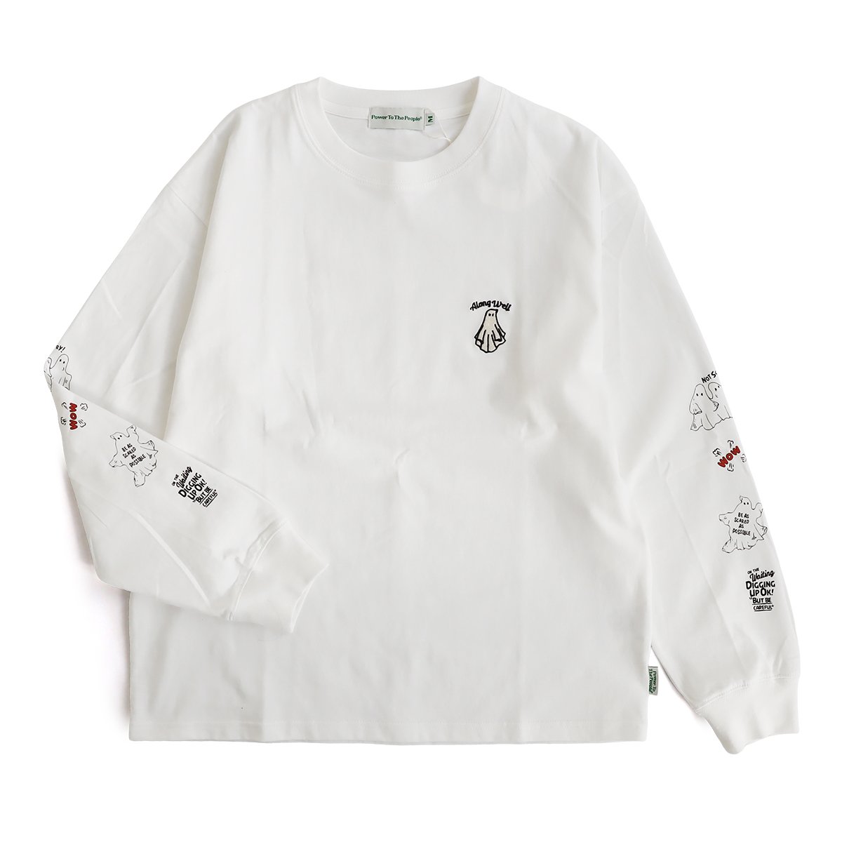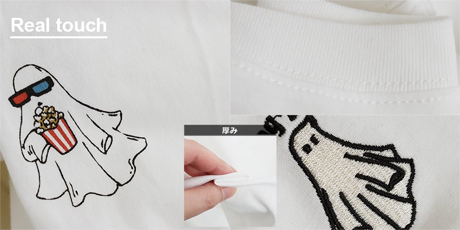 5. カットソー 長袖 メンズ レディース クルーネック キャラクター 刺繍 オバケ 綿100 コットン 通気性 袖リブ ゆったり 大きいサイズ カジュアル パティ