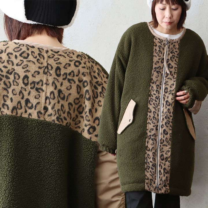 暖かくて、ゆったり着られて、¨カブりにくい¨のがお気に入り。 ボアコート 長袖 レディース お尻隠れる ノーカラー 異素材切り替え ボア 裏地付き 中綿 暖かい 防寒 ゆったり 大きいサイズ 体型カバー カジュアル 秋 冬 パティ GENTIL ジャンティ
