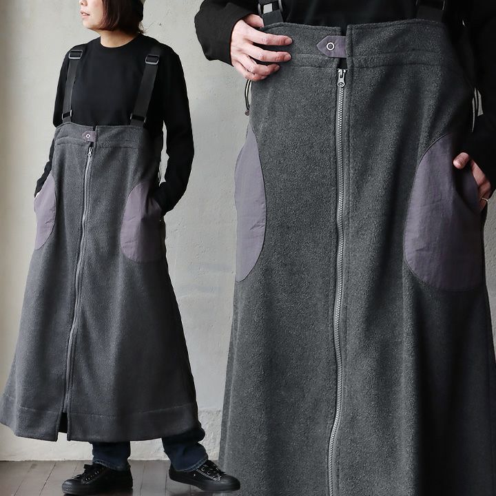 珍しくて、スカートなのに、甘くない。 ジャンパースカート スカート ロング丈 レディース フリース 異素材切り替え ジップ ポケット 暖かい ゆったり 大きいサイズ 体型カバー カジュアル 秋 冬 パティ
