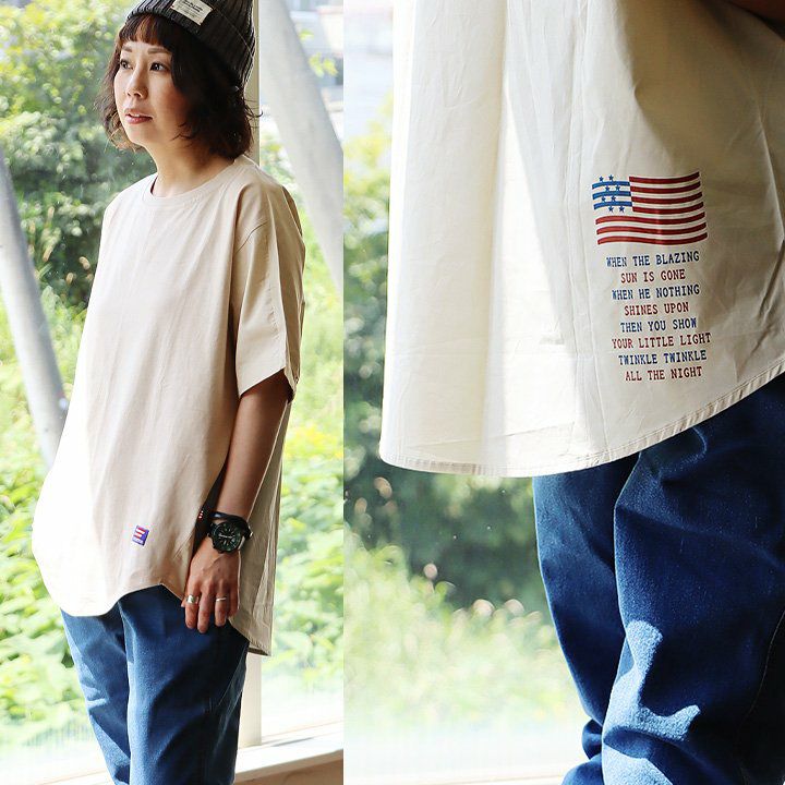 4. 【メール便50】 tシャツ レディース 半袖 しっかり 綿100% USA コットン プリント ビッグシルエット ワイドシルエット ゆったり 着痩せ 甘くない 二の腕 カバー 春 夏 ティーシャツ クルーネック 半袖tシャツ 無地 型崩れ しにくい 大人 カジュアル パティ Souple スプル