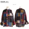 不思議な柄なのに、引き込まれるような魅力。 シャツ 8分袖 レディース スタンドネック 総柄 レトロ パッチワーク アソート 袖フレア 綿100 コットン 薄手 軽い ゆったり 大きいサイズ 体型カバー カジュアル 春 秋 冬 パティ sandy サンディー