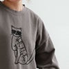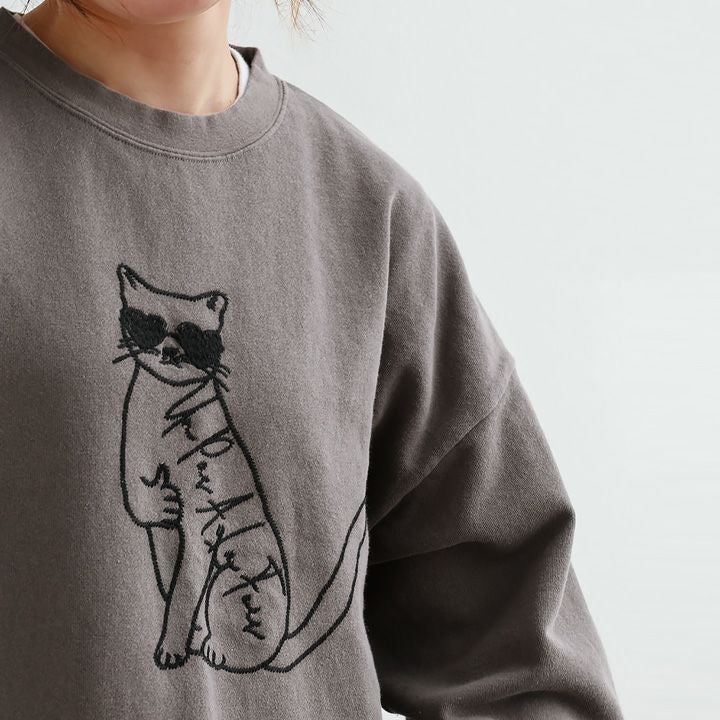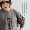 大人好みなギャップがニクイ。 スウェット トレーナー 長袖 レディース クルーネック 猫 ネコ アニマル 刺繍 綿100 コットン 裏毛 伸縮性 ゆったり 大きいサイズ 体型カバー カジュアル パティ KAKELA&TRANQUIL カケラ&トランクイル