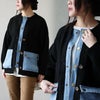 こんな遊びもあったなんて。 ニット カーディガン カーデ 長袖 レディース クルーネック 鹿の子編み ニット デニム 異素材切り替え リメイク風 伸縮性 暖かい ポケット ゆったり カジュアル 秋 冬 パティ KAKELA&TRANQUIL カケラ&トランクイル