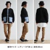 【モデルコメント】中は、カットソー2枚くらいは合わせても問題はありません。程好くゆとりがありました。 【客観的コメント】お尻はほとんど隠れる着丈の長さです。バランスの良いシルエットで着れていましたね。