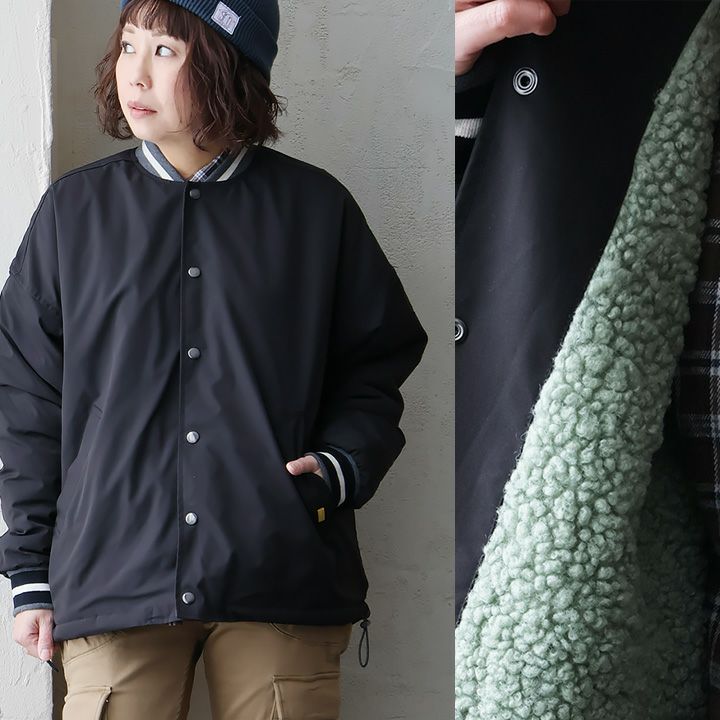こんな「スタジャン」が欲しかった! スタジャン スタジアムジャケット 長袖 レディース リブライン 無地 ポリエステル 裏地付き 配色 ボア 暖かい 保温性 ゆったり 大きいサイズ 体型カバー カジュアル 秋 冬 パティ GENTIL ジャンティ