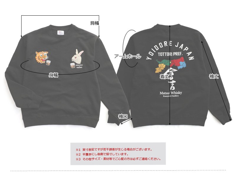 これであなたも「お酒」と「鳥取」推し。 スウェット トレーナー 長袖 メンズ レディース クルーネック スーベニア 刺繍 虎 兎 裏毛 しっかり生地 ゆったり 大きいサイズ 体型カバー カジュアル パティ YOIDORE ヨイドレ