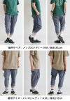 【モデルコメント】骨盤より少し上で穿きました。ウエストゴムや裾リブは軽いフィット感でした。中は、レギパンも合わせやすそうなゆとりがありましたね。 【客観的コメント】ふくらはぎがほとんど隠れる丈の長さです。ゆったりとした感じで穿きたいならって感じのサイジングでしたね。