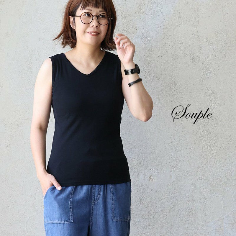 【アウトレット】【傷あり】 タンクトップ 「胸元 が 見えない カバーネック」 綿100% レディース インナー 重ね着 大きいサイズカバー タンク トップ paty パティ Souple スプル