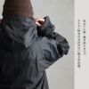 USEDナイロン素材をベースに使っていて、部分的に程よいハリとくったりと柔らかな部分があり軽い生地感です。伸縮性・透け感はありません。
