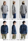 【モデルコメント】中は、Tee・カットソーくらいは合わせやすそうです。生地が厚手なので、ゆとりはそんなになく、ジャストサイズって感じでした。 【客観的コメント】まもるよりもガッチリした人には体型、Lサイズをオススメしたいサイジングだね。