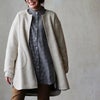【モデルコメント】中は、カットソー2枚くらいは合わせても問題はありません。程好くゆとりがありました。 【客観的コメント】太ももが半分近く隠れる着丈の長さです。バランスの良い良いシルエットで着れていましたね。