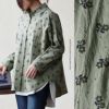 控えめだけど、レトロな雰囲気に惹かれる。 シャツ 長袖 レディース 花柄 プリント レトロ 綿100 コットン 薄手 ハリ しっかり生地 大きいサイズ 体型カバー カジュアル パティ COLORK カラック